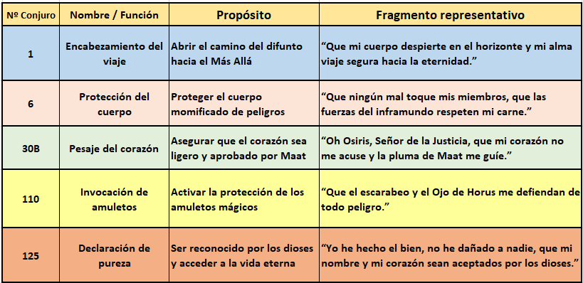 -Protegía y controlaba: Incluía encantamientos para preservar las partes del cuerpo, proteger contra fuerzas hostiles e invocar la ayuda de los dioses.